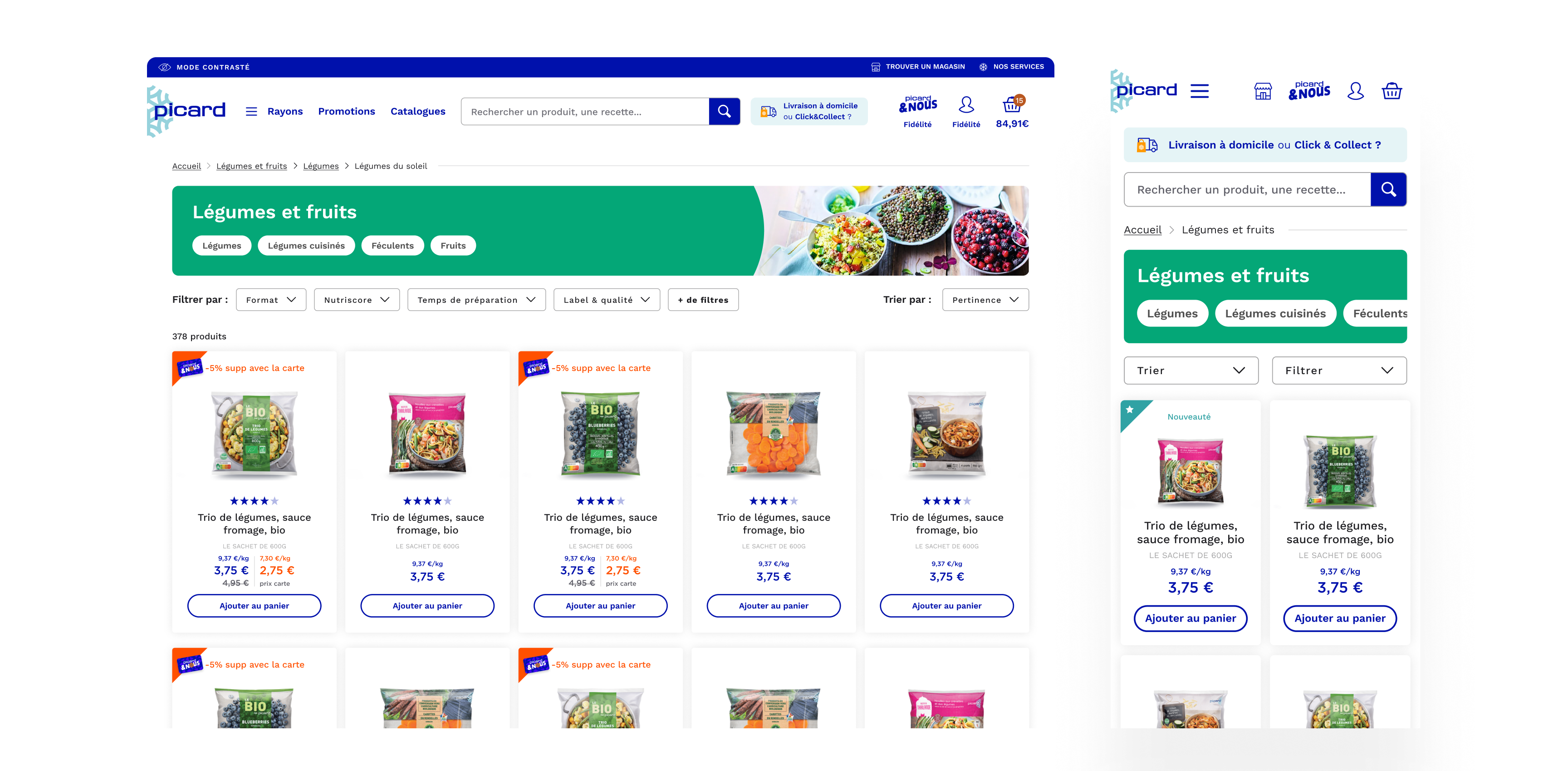 En tant que Product designer, j'ai pris en charge l'app et le site web ecommerce de l'enseigne Picard. Mon rôle, faire évoluer les parcours, améliorer et optimiser le tunnel d'achat et proposer des services de consommation innovants.